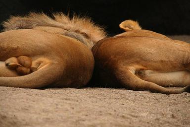Keywords: lion lioness predator cat wildcat animal world animal portrait together lion females sleep testicles großkartze pair mammal wild fur gender love