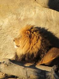 Keywords: lion male wildlife nature feline zoo habitat resting profile head sunset shadows looking big cat panthera leo predator log