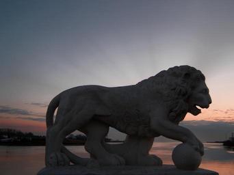 Keywords: lion sculpture sunset evening stone monument landmark historic