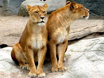 Keywords: lioness lion females lion big cat wildcat cat predator mammal creature together zoo pair carnivores togetherness for two fur two nature female sitting