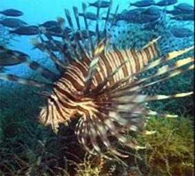 | Keywords: lionfish atlantic invasive species invasivespecies bahamas coral reefs coralreefs fish national ocean service nationaloceanservice noaa animal outdoor Lionfish are uninvited visitors in Atlantic waters. The beauty of lionfish makes them very popular in the aquarium trade, and their introduction into Atlantic waters was likely due to release from private aquaria. Now, research suggests that the diet of these invasive fish could impact the distribution of other fish living in Bahamian coral reefs. To learn more about lionfish, visit: Lionfish Invasion, NOS Education First Lionfish in Florida Keys National Marine Sanctuary, (Making Waves audio podcast) Responders Capture First Lionfish Invader in Sanctuary (Original source: Invasive Lionfish Diet Could Impact Native Coral Reef Fishes) Lionfish are uninvited visitors in Atlantic waters. The beauty of lionfish makes them very popular in the aquarium trade, and their introduction into Atlantic waters was likely due to release from private aquaria. Now, research suggests that the diet of these invasive fish could impact the distribution of other fish living in Bahamian coral reefs. To learn more about lionfish, visit: Lionfish Invasion, NOS Education First Lionfish in Florida Keys National Marine Sanctuary, (Making Waves audio podcast) Responders Capture First Lionfish Invader in Sanctuary (Original source: Invasive Lionfish Diet Could Impact Native Coral Reef Fishes) |