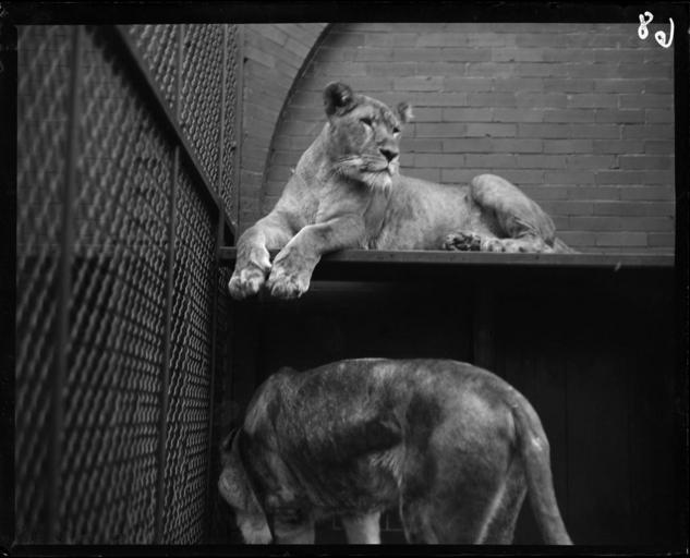 | Keywords: lincoln park zoo chicago illinois lions historic lincoln park zoo lincolnparkzoo animal animals lion lioness animalia chordata mammalia carnivora felidae panthera cage enclosure blackandwhite monochrome black and white Lions at Lincoln Park Zoo. 1900. Original size and material: 4x5 inch glass negative Digital Identifier: Z84206 Part of the Illinois Urban Landscapes Project: www.fieldmuseum.org/urbanlandscapes/ Lions at Lincoln Park Zoo. 1900. Original size and material: 4x5 inch glass negative Digital Identifier: Z84206 Part of the Illinois Urban Landscapes Project: www.fieldmuseum.org/urbanlandscapes/ |