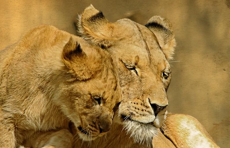Keywords: lions animal mammal tender love cute affection care together lovely nature tenderness baby sweet face