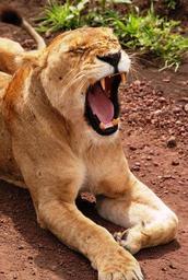 Keywords: lions animals mammals female predator yawning wildlife sitting resting zoo dangerous carnivorous