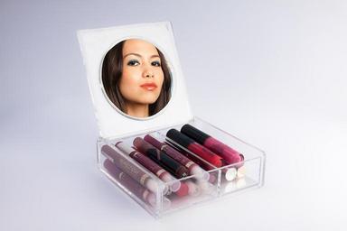 Keywords: lip gloss beauty viewing melted plexiglas container mirror color cosmetics make up red brown
