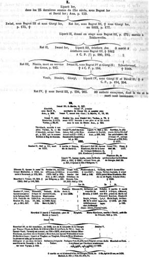 | Keywords: Liparitid family tree (Brosset 350).PNG en The family tree of the Georgian noble family of Liparitids and their offshoots Orbeli according to the French scholar Marie-Felicite Brosset Brosset divides the tree into three parts I - from ancient times to David II IV of Georgia II - from David II IV to the expulsion of the Orbeli under Giorgi III of Georgia III - from Giorgi III to the beginning of the 14th century Brosset Marie-Felicite Additions et eclaircissements a l' histoire de la Georgie pp 350-351 St Petersburg 1851 Brosset Marie-Felicite 1851 PD-old Marie-Félicité Brosset Family trees of Georgia Liparitids Diagrams in French Source Brosset Marie-Felicite Additions et eclaircissements a l' histoire de la Georgie pp 350-351 St Petersburg 1851 |