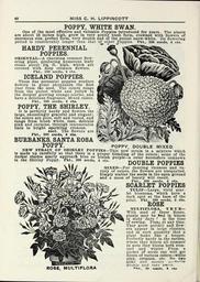 | Keywords: Lippincott seeds (15750796004).jpg 42 <br> MISS C H LIPPINCOTT <br> POPPY WHITE SWAN <br> One of the most effective and valuable Poppies introduced for years The plants <br> are about 18 inches high grow in very pretty bush form crowned with flowers of <br> enormous size perfect form very double and of the purest snow-white Its flowering <br> period is considerably longer than that of other Poppies Pkt 200 seeds 4 cts <br> HARDY PERENNIAL <br> POPPIES <br> ORIENTALi ” A charming summer flow- <br> ering plant producing numerous leafy <br> stems about 2 ft high which are <br> covered with deep crimson flowers <br> Pkt 150 seeds 4 cts <br> ICELAND POPPIES <br> These fine perennial poppies produce <br> flowers in great abundance the first <br> year from the seed The colors range <br> from the purest white and yellow to <br> the deepest glowing orange-scarlet and <br> have a delicious fragrance Mixed colors <br> Pkt 200 seeds 4 cts <br> POPPY THE SHIRLEY <br> It is perfectly hardy and flowers the <br> large exceedingly graceful and elegant; <br> the colors are pure soft and varied and <br> range from blush white rose delicate <br> pink and carmine through innumerable <br> tints to bright sparkling crimson <br> seed The flowers are <br> Pkt 300 seeds 4 cts <br> BURBANKS SANTA ROSA <br> POPPY POPPY DOUBLE MIXED <br> NEW STRAIN OF SHIRLEY POPPIES ” This new strain is a mixture which <br> Is made up carefully so that there is a proper blending of the colors ; some of the <br> darker shades nearly approach blue or bluish purple ” a color heretofore unknown <br> in the Shirley Poppy Pkt 30» aeed 4 c s DOUBLE POPPIES <br> MIXED ” For dazzling ricnness and va- <br> riety of colors the flowers are unequalled <br> Simply scatter the seeds in the open ground <br> and a mass of beauty will result <br> Pkt 300 seeds 4 cts <br> SCARLET POPPIES <br> TUL IP ” Large vivid scar- <br> let blossoms which have a <br> dark spot at the base of the <br> petal Pkt 300 seeds 5 cts <br> ROSE <br> MULTIFLORA T R U E ” <br> With seed of these Roses <br> plants may be Ki\d in bloom <br> in sixty days f 21 the time <br> of sowing Plant at any time <br> They grow quickly and flow- <br> ers appear in large clusters <br> and in such quantity that a <br> plant looks like a boquet <br> Perfectly hardy in the warden <br> where they bloom all summer <br> n pots they bloom both sum- <br> mer and winter From a <br> packet of seeds one will get <br> Roses of various colors ” white <br> pink crimson etc No two <br> alikp nnrl mor4ly ¢rfA ~fW <br> double nnd ery pwr M <br> ROSE MULTI FLORA 42162012 132824 65968 Page 42 Text http //www biodiversitylibrary org/page/42162012 1915 Henry G Gilbert Nursery and Seed Trade Catalog Collection ; Miss C H Lippincott Firm NameFound Multiflora NameConfirmed Multiflora Small J M MacDougal Feuillet supersect NameBankID 9260529 Biodiversity Heritage Library Lippincott seeds 1915 Garden Stories Catalogs Flowers Fruit Nurseries Horticulture Seeds Vegetables U S Department of Agriculture National Agricultural Library bhl page 42162012 dc identifier http //biodiversitylibrary org/page/42162012 bhlGardenStories BHLinbloom nurseries horticulture u s department of agriculture national agricultural library bhlgardenstories bhlinbloom Information field Flickr posted date ISOdate 2015-01-26 Check categories 2015 August 25 CC-BY-2 0 BioDivLibrary https //flickr com/photos/61021753 N02/15750796004 2015-08-25 05 51 14 cc-by-2 0 PD-old-70-1923 Lippincott seeds Photos uploaded from Flickr by Fæ using a script |