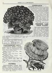 | Keywords: Lippincott seeds (16186007590).jpg 14 <br> MISS C H LIPPINCOTT <br> CINERARIA <br> HYBKIDA Oue of the most popular <br> of ail jjcreeuhouse plants and what <br> I splendid display they make when <br> well grown I know of no plant <br> o easily grown as the Cineraria <br> The secret of growing well is <br> grow fast never allowing <br> them to receive a check <br> either from being pot <br> bound dryness of root <br> or attack of insects; the <br> cooler they are kept the <br> better In colors they <br> range from crimson ma- <br> genta violet purple and <br> variegated Large flower- <br> ing mixed <br> rut 200 seeds 10 cts <br> CHINESE LAN- <br> TERN PLANT <br> PHYSALIS 1 RAXCHETTI <br> The plant produces num- <br> erous large inflated husks <br> much the shape of Chinese <br> lanterns at first a beautiful <br> green color changing to a <br> yellowish hue and then to <br> brightest scarlet Branches <br> rM V 'iof dried retain their <br> ClAii it iwx £tii5i iJJA i-ich and brilliant color and <br> make beautiful winter boquets when used with dry grasses and leaves The plant <br> grows from I14 to 2 feet in height Pkt 100 <br> seeds 6 cts <br> Have <br> used <br> your <br> seeds several <br> years w <br> ith success <br> -Eliza <br> M <br> Dewev <br> Canton <br> Ills <br> March <br> 16 <br> 1915 <br> CANTERBURY BELL <br> CAMPANULA MEDIA Calycan- <br> thema Cup and Saucer Canterbury <br> Bells This is unquestionably the <br> finest type of this old-fashioned and <br> much prized garden plant <br> ROSE Delicate rose pink <br> 200 seeds 8 cts <br> BL UE A fine clear shade <br> 200 seeds 8 cts <br> STRIPED White striped <br> Pkt 200 seeds 8 cts <br> FINEST 3nXED All colors of the <br> Cup and Saucer type Pkt 400 <br> seeds 5 cts <br> One packet each of the 4 colors of <br> Cup and Saucer Canterbury Bells <br> 35 cts <br> Pkt <br> Pkt <br> blue <br> CUPHEA <br> PLATYCENTRA Floral Fire- <br> cracker Useful for baskets vases <br> bedding bearing innumerable red <br> tube-shaped flowers Easily raised <br> from seed which should be sown in <br> early spring in greenhouse hotbed <br> or window Pkt 10 cts <br> CANTERBURY BELL 42205422 132981 65968 Page 14 Text http //www biodiversitylibrary org/page/42205422 1915 Henry G Gilbert Nursery and Seed Trade Catalog Collection ; Miss C H Lippincott Firm NameFound Campanula media NameFound CINERARIA NameConfirmed Cineraria EOLID 6258313 NameBankID 1674869 NameFound CINERARIA NameConfirmed Cineraria EOLID 6258313 NameBankID 4894724 NameFound Cuphea platycentra NameConfirmed Cuphea platycentra Lem 1846 EOLID 5429006 NameFound Physalis NameConfirmed Physalis EOLID 11196159 NameBankID 1761345 Biodiversity Heritage Library Lippincott seeds 1916 Garden Stories Catalogs Flowers Fruit Nurseries Horticulture Seeds Vegetables U S Department of Agriculture National Agricultural Library bhl page 42205422 dc identifier http //biodiversitylibrary org/page/42205422 bhlGardenStories BHLinbloom nurseries horticulture u s department of agriculture national agricultural library bhlgardenstories bhlinbloom Information field Flickr posted date ISOdate 2015-01-26 Check categories 2015 August 25 CC-BY-2 0 BioDivLibrary https //flickr com/photos/61021753 N02/16186007590 2015-08-25 05 51 52 cc-by-2 0 PD-old-70-1923 Lippincott seeds Photos uploaded from Flickr by Fæ using a script |