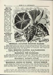 | Keywords: Lippincott seeds (16187006829).jpg s are inadequate Pkt Single and <br> Doable Mixed 75 Seeds 5 cts ; oz 20 cts <br> TALL MORNING GLORIES OLD-FASHIONED <br> All colors mixed Pkt 100 seeds 4 cts ; oz 10 cts <br> MARIGOLD THE ELDORADO <br> The large bushy plants are each a ball of brilliant color many single plants <br> having seventy-five flowers in bloom at one time The flowers are 3 to 4 inches in <br> diameter imbricated and perfectly double They embrace four shades of color ” the <br> lightest primrose lemon golden yellow and deep oinnge Pkt 100 seeds 4 cts <br> MARIGOLD FRENCH MIXED <br> A class of showy and extremely effective plants with fine double flowers of rich and <br> beautiful colors; very well adapted for large beds and bordering Pkt 100 seeds 4c <br> MARIGOLD LEGION OF HONOR DWARF SINGLE <br> The blooms are of medium size rich golden yellow with the center of each petal <br> broadly marked with velvety crimson brown and with cln stering stamens in bright <br> shades of orange yellow blooms abundantly from July until cut down by frost So <br> easily raised from seed that I strongly recommend it to everyone Pkt 100 seeds 4c <br> NICOTIANA AFFINIS <br> When its large pure white flowers are fully expanded in the evening and early <br> morning it has a most striking effect and is so fragrant that a small bed will <br> perfume the whole surrounding atmosphere If the plants are taken up in the fall cut <br> back and potted they will bloom freely all winter in the house Pkt 300 seeds 6 cts 42162008 132824 65968 Page 38 Text http //www biodiversitylibrary org/page/42162008 1915 Henry G Gilbert Nursery and Seed Trade Catalog Collection ; Miss C H Lippincott Firm NameFound Bona nox NameFound Nicotiana affinis NameConfirmed Nicotiana affinis T Moore EOLID 486699 NameBankID 618477 Biodiversity Heritage Library Lippincott seeds 1915 Garden Stories Catalogs Flowers Fruit Nurseries Horticulture Seeds Vegetables U S Department of Agriculture National Agricultural Library bhl page 42162008 dc identifier http //biodiversitylibrary org/page/42162008 bhlGardenStories BHLinbloom nurseries horticulture u s department of agriculture national agricultural library bhlgardenstories bhlinbloom Information field Flickr posted date ISOdate 2015-01-26 Check categories 2015 August 25 CC-BY-2 0 BioDivLibrary https //flickr com/photos/61021753 N02/16187006829 2015-08-25 05 54 25 cc-by-2 0 PD-old-70-1923 Lippincott seeds Photos uploaded from Flickr by Fæ using a script |