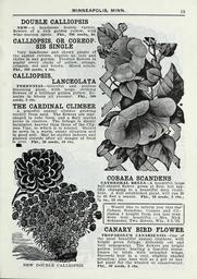 | Keywords: Lippincott seeds (16347414676).jpg MINNEAPOLIS MINN <br> la <br> DOUBLE CALLIOPSIS <br> NEW A handsome double variety <br> flowers of a rich golden yellow with <br> wine-maroon spots Pkt 200 seeds 4c <br> CALLIOPSIS OR COREOP- <br> SIS SINGLE <br> Very handsome and showy plants of <br> the easiest culture require no care and <br> thrive in any garden Produce flowers in <br> nearly every shade of yellow orange <br> crimson red and brown Mixed colors <br> Pkt 300 seeds 4 ets <br> CALLIOPSIS <br> LANCEOLATA <br> PERENNIAL Graceful and profuse <br> blooming plant with large striking <br> flowers of a brilliant golden yellow Re- <br> mains in bloom all summer Pkt 200 <br> seeds 5 cts <br> THE CARDINAL CLIMBER <br> A graceful annual climber growing <br> readily from seed The flowers are star- <br> shaped in tube form and a fiery scarlet <br> borne in clusters The foliage is deeply <br> laciniated heavier than those of the Cyp- <br> ress Vine to which it is related Should <br> be sown in a warm sunny situation and <br> in good soil May be started indoors and <br> planted outside after all danger of frost <br> is over Pkt 20 seeds 10 ets <br> COBAEA SCANDENS <br> CATHEDBAI BELLS A beautiful large <br> bell-shaped flower green at flrst but rap- <br> idly changing to a beautiful deep violet- <br> blue A well established plant will run 30 <br> to 40 feet a season Pkt 20 seeds 5 ets ; <br> oz 15 cts <br> Would like to inform you that the' <br> Cobaea Scandens Cannas and Cy- <br> clanen 1 bought from you last year <br> were very beautiful Mrs Nick <br> Schroeder Two Rivers Wis 3-l-'15 <br> NEW DOUBLE CALLIOPSIS <br> CANARY BIRD FLOWER <br> TROPAEOLUM CANARIENSIS One of <br> the most beautiful annual climbers with <br> bright green foliage delicately cut and <br> very ornamental The flowers are bright <br> golden yellow bearing a fanciful resem- <br> blance to birds with extended wings <br> Succeeds best in a cool slightly shaded <br> situation ; also does well as a pot or bas- <br> ket plant for the window or couservatorv <br> Pkt 30 seeds 5 cts 42205421 132981 65968 Page 13 Text http //www biodiversitylibrary org/page/42205421 1915 Henry G Gilbert Nursery and Seed Trade Catalog Collection ; Miss C H Lippincott Firm NameFound Calliopsis NameConfirmed Calliopsis EOLID 2748143 NameBankID 4099619 NameFound Calliopsis canary NameConfirmed Valliopsis canora Casey T L 1922 NameFound Cobaea NameConfirmed Cobaea EOLID 5694106 NameBankID 1778130 NameFound Cobaea scandens NameConfirmed Cobaea scandens EOLID 6359727 NameBankID 1672054 NameFound Lanceolata NameConfirmed LANCEOLATA EOLID 2762079 NameBankID 544027 NameFound Tropaeolum canariensis NameConfirmed Tropaeolum canariense Lindley Moore Biodiversity Heritage Library Lippincott seeds 1916 Garden Stories Catalogs Flowers Fruit Nurseries Horticulture Seeds Vegetables U S Department of Agriculture National Agricultural Library bhl page 42205421 dc identifier http //biodiversitylibrary org/page/42205421 bhlGardenStories BHLinbloom nurseries horticulture u s department of agriculture national agricultural library bhlgardenstories bhlinbloom Information field Flickr posted date ISOdate 2015-01-26 Check categories 2015 August 25 CC-BY-2 0 BioDivLibrary https //flickr com/photos/61021753 N02/16347414676 2015-08-25 05 53 41 cc-by-2 0 PD-old-70-1923 Lippincott seeds Photos uploaded from Flickr by FĂŚ using a script |