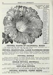 | Keywords: Lippincott seeds (16372531022).jpg 30 <br> MISS C H LIPPINCOTT <br> 0 E PACKET OF EACH <br> VARIETY OF PETU- <br> NIAS 6 PACKETS <br> FOR 40 CENTS <br> 9 9 <br> 9 ~ - <br> ¢sic 1 <br> PETUNIA GIANTS OF CALIFORNIA MIXED <br> The flowers are very large and the colors embrace every conceivable shade of <br> crimson white violet lavender Pkt 200 seeds 10 cts <br> PETUNIA GRANDIFLORA LARGE FLOWERING MIXED <br> The largest flowering and richest colored variety in cultivation Single flowers <br> frequently measure over five inches in diameter ruffled or fringed on the edges and <br> beautifully veined with various shades of purple rose lavender yellow and crimson <br> Pkt 200 seeds 10 cts <br> PETUNIA DOUBLE <br> Finest varieties carefully fecundated with the double flowers and will produce <br> from twenty-five to forty per cent double flowering plants Some double fringed iu <br> all shades of colors existing in Petunias and the blossoms that come single will be <br> of the grandiflora type Pkt 100 seeds 15 cts <br> SINGLE PETUNIA SNOWBALL <br> Grows about eight inches high with satiny pure white flowers and makes a <br> beautiful edging or bedding plant Pkt 200 seeds 5 cts <br> NEW STAR PETUNIA <br> An exquisite variety either for the garden or pot culture each flower having <br> distinct white starlike stripes on rich purplish red ground Pkt 200 seeds 5 cts <br> PETUNIA HYBRIDA-FINEST MIXED <br> A splendid mixture embracing all colors <br> massing Pkt 300 seeds 5 cts <br> They are excellent for bedding or 42205438 132981 65968 Page 30 Text http //www biodiversitylibrary org/page/42205438 1915 Henry G Gilbert Nursery and Seed Trade Catalog Collection ; Miss C H Lippincott Firm NameFound Petunia NameConfirmed Petunia Juss EOLID 60149 Biodiversity Heritage Library Lippincott seeds 1916 Garden Stories Catalogs Flowers Fruit Nurseries Horticulture Seeds Vegetables U S Department of Agriculture National Agricultural Library bhl page 42205438 dc identifier http //biodiversitylibrary org/page/42205438 bhlGardenStories BHLinbloom nurseries horticulture u s department of agriculture national agricultural library bhlgardenstories bhlinbloom Information field Flickr posted date ISOdate 2015-01-26 Check categories 2015 August 25 CC-BY-2 0 BioDivLibrary https //flickr com/photos/61021753 N02/16372531022 2015-08-25 05 50 44 cc-by-2 0 PD-old-70-1923 Lippincott seeds Photos uploaded from Flickr by Fæ using a script |