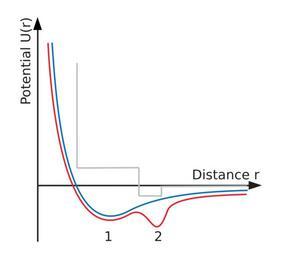 Keywords: Liq-liq-potential2.svg en schematicof a lennard jones type potential and a double well potential Own Lawrie skinner 2009-02-27 Amorphous matter Double-well potentials 1D quantum wavefunctions