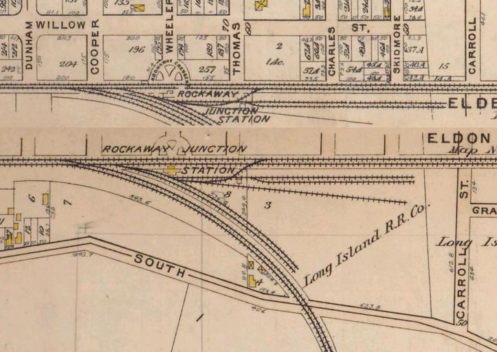 | Keywords: LIRR 1909 Rockaway Junction station.jpg This is a portion of a 1909 map of Queens New York United States showing Rockaway Junction station The map was scanned by the New York Public Library with Digital Image ID 1516372 and 1516373 The north-south street at the station is Wheeler Avenue now 178th Place PD-art Artworks missing infobox template Long Island Rail Road maps Old railroad maps of New York City Hollis Queens | ||||