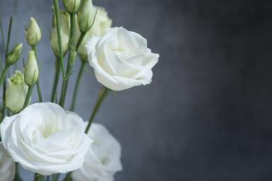 Keywords: lisianthus flower blossom bloom white white flower white flowers petals schnittblume tiresome sweet close tender floristry flowers photography text freedom negative space
