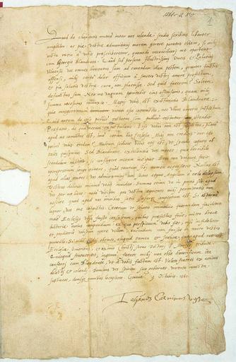 Keywords: List Jana Kalwina do zboru kalwińskiego w Wilnie.jpg pl List Jana Kalwina do zboru ewangelicko-reformowanego w Wilnie zawierający potępienie antytrynitarskich poglądów Jerzego Blandraty ru Письмо Яна Кальвина кальвинистскому синоду п оходившему в столице Великого княжества Литовского Вильне в том числе соде жащий осуждение взглядов Джо джио Бланд аты антит инита ия и сто онника учения игеля Се вета находившегося под пок овительством иколая Ралзивилла Чё ного в Вильне 9 X 1561 Genewa http //archiwa polska pl/instytucje/skarb List_Jana_Kalwina_do_zboru_kalwinskiego_w_Wilnie_z_dnia_9_X_1561_roku gid 125794 cid 5739 htm Jean Calvin PD-old 1561 letters Letters by Jean Calvin Giorgio Biandrata Humanistische Kursive