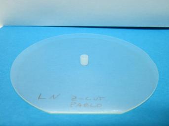 Keywords: Lithium Niobate Wafer.jpg Uploaded with en wp UW marker 2012 09 16 A Lithium Niobate Wafer single crystal own 9/15/12 Smithy71 cc-zero Lithium compounds Niobium compounds