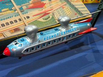 Keywords: Litho tin toy MONORAIL ROCKET-SHIP - LINEMAR, Rocket Express pic2.JPG Litho tin toy MONORAIL ROCKET-SHIP - LINEMAR Rocket Express own 2012-11-24 13 55 07 Alf van Beem Cc-zero Trademarked Tin space toys Nostalgia by Alf van Beem
