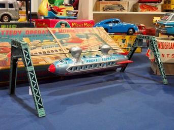 Keywords: Litho tin toy MONORAIL ROCKET-SHIP - LINEMAR, Rocket Express pic4.JPG Litho tin toy MONORAIL ROCKET-SHIP - LINEMAR Rocket Express own 2012-11-24 13 56 25 Alf van Beem Cc-zero Trademarked Tin space toys Nostalgia by Alf van Beem