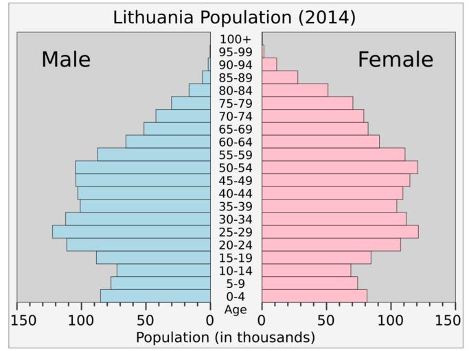 Keywords: Lithuaniapop.svg translate yes en Current population pyramid of Lithuania 2014 from UN estimates World Population Prospects http //esa un org/unpd/wpp/Excel-Data/population htm The 2012 Revision 2014-08-26 own Delphi234 cc-zero Population pyramids of Lithuania Uploaded with UploadWizard |