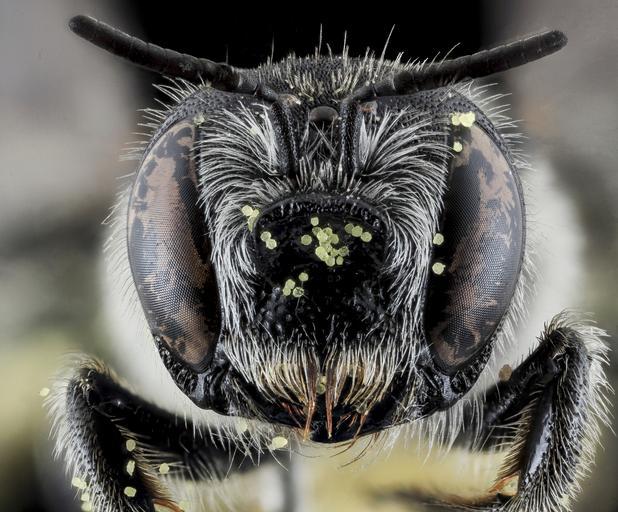 | Keywords: bug bugs bee bees pollinator pollinators animal animals animalia arthropod arthropods arthropoda insect insects insecta hymenoptera aculeata anthophila apoidea megachilidae lithurginae lithurgus gibbosus lithurgusgibbosus taxonomy:binomial=llithurgus gibbosus taxonomy:binomial=llithurgusgibbosus lithurgus biml usgs sandhills cactus prickly pear pricklypear north carolina northcarolina droege zerene stacker zerenestacker stackshot usgsbiml cat pet In North America this genus are primarily cactus pollen specialists. Since this one was captured in the sandhills of North Carolina by Heather Campbell it is undoubtedly covered in Prickly Pear cactus pollen. Note the projecting shelf just below the antennae on this female...collected by Heather Canon Mark II 5D, Zerene Stacker, Photographer: Sam Droege, 65mm Canon MP-E 1-5X macro lens, Twin Macro Flash, F5.0, ISO 100, Shutter Speed 200 In North America this genus are primarily cactus pollen specialists. Since this one was captured in the sandhills of North Carolina by Heather Campbell it is undoubtedly covered in Prickly Pear cactus pollen. Note the projecting shelf just below the antennae on this female...collected by Heather Canon Mark II 5D, Zerene Stacker, Photographer: Sam Droege, 65mm Canon MP-E 1-5X macro lens, Twin Macro Flash, F5.0, ISO 100, Shutter Speed 200 |