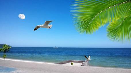 Keywords: litoral serra orla beach mar nature water beira mar ocean sky salt water blue sky tranquility rocks bird stones sand birds seagulls coconut trees island flower saquarema rio de janeiro brazil mata atlantica beach chair umbrella ball moon