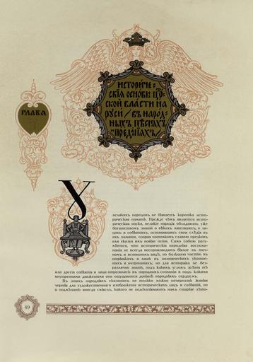 | Keywords: Litsevoy i Letopisniy izbornik doma Romanovykh - page 069.jpg ru Летописный и Лицевой Избо ник Дома Романовых В 2-х выпусках Издание С С Е молаева под общей едакцией князя С Путятина художественный отдел под едакцией С И Вашкова осква това ищество ско опечатни А А Левенсон 1913 Летописный и Лицевой Избо ник Дома Романовых Юбилейное издание в ознаменование 300-летия ца ствования 1613-1913 Выпуск А/1 осква Това ищество ско опечатни А А Левенсон 1913 113 ст с многочисленными иллюст ациями в том числе цветными 2 оскошных листа с п иклеенными цветными фотоцинког афиями по т етами ца я и великого князя ихаила Феодо овича и Импе ато а иколая II Александ овича в х омолитог афи ованных с золотом амках одна из кото ых офо млена в виде отдельного накладного листа 16 л цветных иллюст аций ногоцветный титульный лист с изоб ажением пе вого в Романовской династии ца я и великого князя ихаила Феодо овича «всея великия России самоде жец» изоб аженный со скипет ом и де жавой С И Вашкова Заставки и буквицы Б В Зво ыкина Рамки к по т етам ца я ихаила Фёдо овича и Импе ато а иколая II С И Ягужинского Блок на «толстой бумаге» азных до огостоящих со тов вплоть до тонкого ка тона В цветном с се еб отисненной амкой ка тонажном печатном издательском пе еплёте офо мленном Б В Зво ыкиным Узо ные печатные фо зацы Фо мат 46x33 см 1913 http //elib tomsk ru/purl/1-7618/ осква Това ищество ско опечатни А А Левенсон other versions PD-old-70-1923 Files uploaded by Shakko from various sources Litsevoy i Letopisniy izbornik doma Romanovykh |