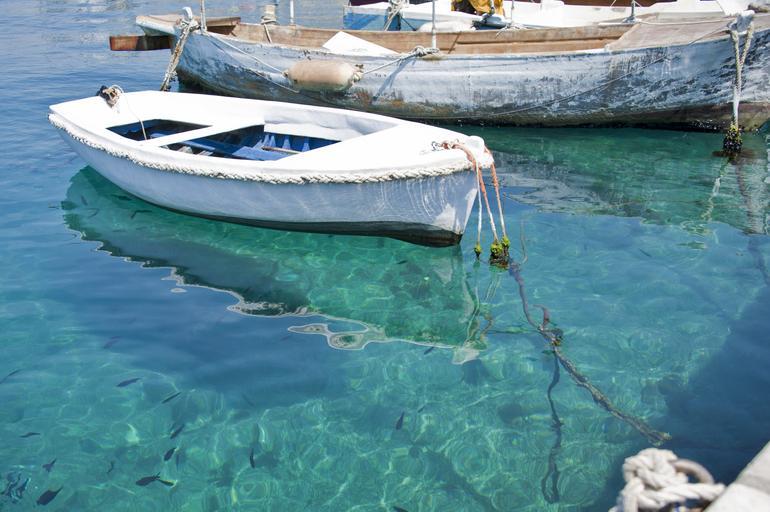 Keywords: little boat water bright blue boat port holiday travel mooring