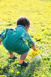 Keywords: little boy in dandelions dandelions yellow spring nature grass meadow happy