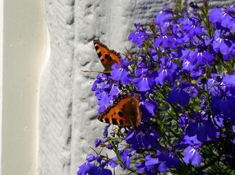 Keywords: little fox butterflies lobelia flower purple insects garden