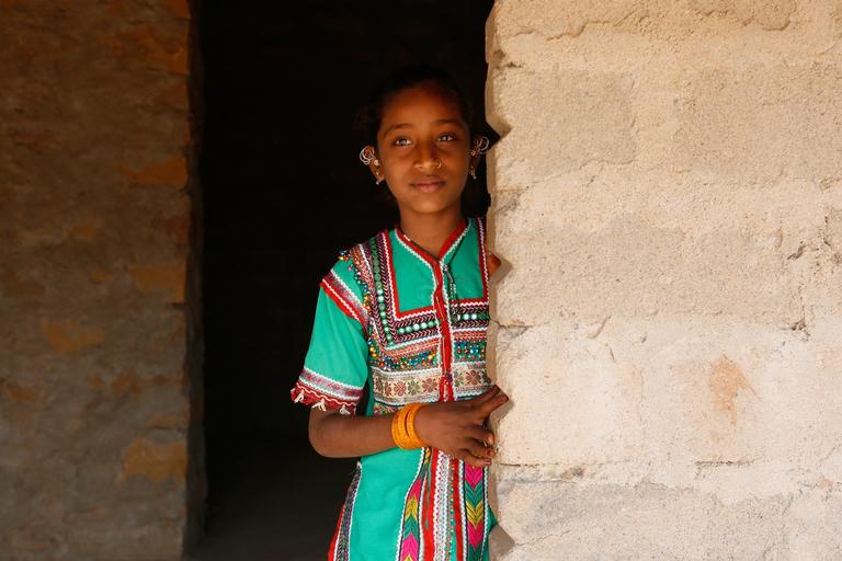 Keywords: little girl gujarat bhuj india asia ruins hindu tribal tradition