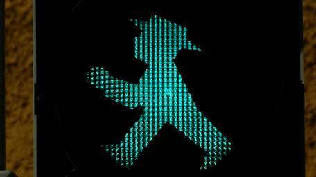 Keywords: little green man traffic lights footbridge traffic signal green males light signal foot gear males road sign road signal lamp go cross pedestrian eastern ampelmännchen ddr