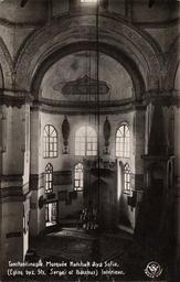 | Keywords: little hagia sophia mosque littlehagiasophiamosque küçük ayasofya camii küçükayasofyacamii aya sergios ve bachos kilisesi ayasergiosvebachoskilisesi aziz sergius ve aziz bacchus azizsergiusveazizbacchus küçük ayasofya küçükayasofya iustinianos camii kilise kapıağası hüseyin ağa kapıağasıhüseyinağa bizans byzantium byzantine salt araştırma saltaraştırma salt research saltresearch salt online saltonline monochrome architecture indoor www.archives.saltresearch.org/R/-?func=dbin-jump-full&amp... “XVI. yüzyılın başlarında II. Bayezid döneminin Kapıağası Hüseyin Ağa tarafından camiye çevrilmiş bir Bizans kilisesi olup yakınına bir zâviye ile kurucusunun türbesi de eklenmiştir. [...] Ayasofya’nın da kurucusu olan Iustinianos tarafından 530 yılına doğru inşa ettirilmiştir. İki eserin plan bakımından bazı benzerlikler taşıması sebebiyle buraya Türk devrinde Küçük Ayasofya denilmiştir. [...] Küçük Ayasofya Camii, esasını teşkil eden büyük bir kubbenin hâkim olduğu merkezî planlı Erken Bizans dönemi yapılarının güzel bir örneğidir. [...] Camiye dönüştürüldükten sonra üzerinde yapılan değişikliklerin büyük bir kısmı klasik Türk sanatının örnekleridir. Böylece Küçük Ayasofya Camii, Bizans ve Türk mimarilerinin birbiri içine grift olduğu bir eser halinde günümüze kadar gelmiştir.” Kaynak: Semavi Eyice, “TDV İslâm Ansiklopedisi”, 2002, Cilt 26, ss. 520-522 Küçük Ayasofya Camii, iç mekân SALT Araştırma - Ali Saim Ülgen Arşivi www.archives.saltresearch.org/R/-?func=dbin-jump-full&amp... “XVI. yüzyılın başlarında II. Bayezid döneminin Kapıağası Hüseyin Ağa tarafından camiye çevrilmiş bir Bizans kilisesi olup yakınına bir zâviye ile kurucusunun türbesi de eklenmiştir. [...] Ayasofya’nın da kurucusu olan Iustinianos tarafından 530 yılına doğru inşa ettirilmiştir. İki eserin plan bakımından bazı benzerlikler taşıması sebebiyle buraya Türk devrinde Küçük Ayasofya denilmiştir. [...] Küçük Ayasofya Camii, esasını teşkil eden büyük bir kubbenin hâkim olduğu merkezî planlı Erken Bizans dönemi yapılarının güzel bir örneğidir. [...] Camiye dönüştürüldükten sonra üzerinde yapılan değişikliklerin büyük bir kısmı klasik Türk sanatının örnekleridir. Böylece Küçük Ayasofya Camii, Bizans ve Türk mimarilerinin birbiri içine grift olduğu bir eser halinde günümüze kadar gelmiştir.” Kaynak: Semavi Eyice, “TDV İslâm Ansiklopedisi”, 2002, Cilt 26, ss. 520-522 Küçük Ayasofya Camii, iç mekân SALT Araştırma - Ali Saim Ülgen Arşivi |