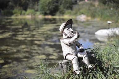 Keywords: little man wood doll water lake pond aquatic plants fishing pond waters reed nature forest lake view bäumchen