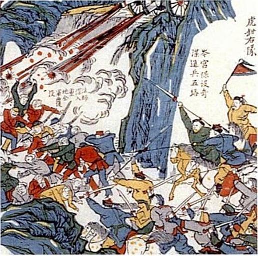 | Keywords: Liu Yongfu defeats French at Bac Ninh.jpg en General w Liu Yongfu fighting the French during the Sino-French War This detail shows Chinese mounted officers No copyright law existed in China at that time image in public domain http //books google com/books id wWvl9O4Gn1UC pg PR15 dq defeat+of+french+bac+ninh+by+liu+yongfu+detail hl en ei b72yTIq1FISClAe5zbDlDw sa X oi book_result ct result resnum 1 ved 0CCkQ6AEwAA v onepage q defeat 20of 20french 20bac 20ninh 20by 20liu 20yongfu 20detail 20officers 20mounted 20chinese f false page 167 of Some did it for civilisation some did it for their country a revised view of the boxer war By Jane E Elliott Unknown No copyright law existed in China at that time image in public domain 1884 PD-China PD-Art Military of China Military of Imperial China Military of Qing China Military people of Imperial China Military people of the Qing Dynasty Sino-French War Bac-Ninh campaign |