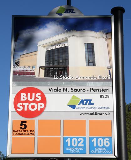 | Keywords: Livorno ATL bus stop 8228.JPG en ITA Livorno Viale Sauro Azienda Trasporti Livornese bus stop sign is characterized by the image that recalls the place here the Stadio Armando Picchi Livorno Azienda Trasporti Livornese segnale di fermata per lo stadio Armando Picchi La foto dello stadio è stata prelevata da Wikimedia Commons e utilizzata dalla società che ha creato il segnale senza specificare la provenienza own Piergiuliano Chesi 2012-12-09 trademarked Bus stop signs in Livorno | ||||