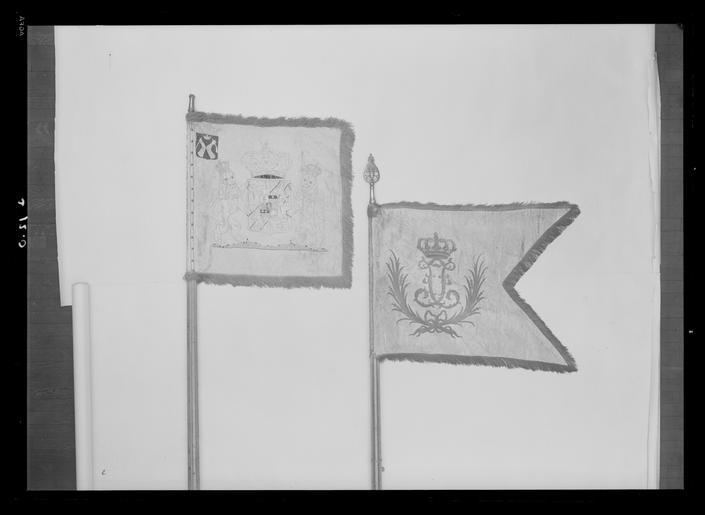 | Keywords: Livstandar vid Karelen och Viborgs läns kavalleri - Livrustkammaren - 26620.tif  Fredrik I av Sverige plain text Från Fredrik I s tid Duk av dubbel vit sidendamast sammansydd av två våder Mönsterrapport på damasten h 470 mm b 245 mm Dekor i applikationsbroderi lika på båda sidor med silke och påsytt siden svenska riksvapnet med Hessen-Kassels vapen i hjärtskölden Såsom sköldhållare två dubbelsvansade med slutna kronor krönta lejon med framåtvända ansikten stående på en 550 mm hög markbit Lejonen applicerade i vit atlas med konturbroderi i vitt och brunt silke Den stora slutna kronan fodrad med sammet ursprungligen röd numera brun Riksvapnet omges av ett vitt band vapnets botten av blå atlas; i övre inre hörnet ett 175 mm högt och 113 mm brett vapen med rött fält varpå två mot varandra vända väpnade armar mellan vilka en öppen krona Karelens vapen genomgående mycket blekta förutom hjärtvapnets mörkblå botten Karelens damast botten karmosinröd Frans enkel drejad av gult silke Duken fäst med tre rader tennlickor på svartkantade gula band Stång av trä kannelerad Löpande bärring Saknar klack Järnbeslagen Holk av förgylld mässing profilerad original caption - 1720 1728 silk Färg gul brun vit material silke - wood - brass - iron size mm 710 size mm 705 size mm 78 frans size mm 94 holk size mm 3480 stång total size mm 475 våd övre size mm 240 våd nedre LRK place of origin original filename LN_B06493_009373 53559 inventory number LRK 17005 26620 CC0 Livstandar vid Karelen och Viborgs läns kavalleri - Livrustkammaren - 26620-negative tif <gallery caption Different images of same object > File Livstandar vid Karelen och Viborgs läns kavalleri - Livrustkammaren - 35181 tif File Livstandar vid Karelen och Viborgs läns kavalleri - Livrustkammaren - 17550 tif File Livstandar vid Karelen och Viborgs läns kavalleri - Livrustkammaren - 51743 tif </gallery> Heraldic flags Media contributed by LSH unmatched material Media contributed by LSH dim-with multiple size templates Media contributed by LSH 2013-10 |