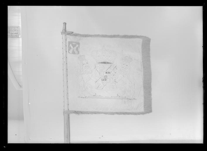 | Keywords: Livstandar vid Karelen och Viborgs läns kavalleri - Livrustkammaren - 51743.tif  Fredrik I av Sverige plain text Från Fredrik I s tid Duk av dubbel vit sidendamast sammansydd av två våder Mönsterrapport på damasten h 470 mm b 245 mm Dekor i applikationsbroderi lika på båda sidor med silke och påsytt siden svenska riksvapnet med Hessen-Kassels vapen i hjärtskölden Såsom sköldhållare två dubbelsvansade med slutna kronor krönta lejon med framåtvända ansikten stående på en 550 mm hög markbit Lejonen applicerade i vit atlas med konturbroderi i vitt och brunt silke Den stora slutna kronan fodrad med sammet ursprungligen röd numera brun Riksvapnet omges av ett vitt band vapnets botten av blå atlas; i övre inre hörnet ett 175 mm högt och 113 mm brett vapen med rött fält varpå två mot varandra vända väpnade armar mellan vilka en öppen krona Karelens vapen genomgående mycket blekta förutom hjärtvapnets mörkblå botten Karelens damast botten karmosinröd Frans enkel drejad av gult silke Duken fäst med tre rader tennlickor på svartkantade gula band Stång av trä kannelerad Löpande bärring Saknar klack Järnbeslagen Holk av förgylld mässing profilerad original caption - 1720 1728 silk Färg gul brun vit material silke - wood - brass - iron size mm 710 size mm 705 size mm 78 frans size mm 94 holk size mm 3480 stång total size mm 475 våd övre size mm 240 våd nedre LRK place of origin original filename LN_B00926_003806 53559 inventory number LRK 17005 51743 CC0 Livstandar vid Karelen och Viborgs läns kavalleri - Livrustkammaren - 51743-negative tif <gallery caption Different images of same object > File Livstandar vid Karelen och Viborgs läns kavalleri - Livrustkammaren - 26620 tif File Livstandar vid Karelen och Viborgs läns kavalleri - Livrustkammaren - 35181 tif File Livstandar vid Karelen och Viborgs läns kavalleri - Livrustkammaren - 17550 tif </gallery> Heraldic flags Media contributed by LSH unmatched material Media contributed by LSH dim-with multiple size templates Media contributed by LSH 2013-10 |