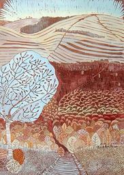 Keywords: Liz Somerville - Beyond the Forest - hand colored lino cut art-call Artistically