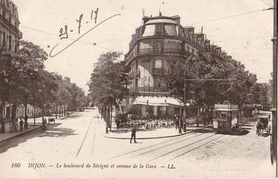 | Keywords: LL 180 - DIJON - Le Boulevard de Sévigné et avenue de la Gare.JPG DIJON - Le Boulevard de Sévigné et avenue de la Gare Collection personnelle Scanné par Claude_villetaneuse Carte datée de 1917 Anonymous-EU Boulevard de Sévigné Dijon Avenue de la Gare Dijon Cafés in Dijon Historical trams in Dijon Postcards of Dijon Dijon in the 1910s |