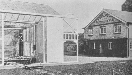 | Keywords: james williamson jameswilliamson 1906 blackandwhite monochrome building architecture outdoor black and white Lo studio di James Williamson intorno al 1906. Da notare la cinepresa posta su di un carrello per le riprese in movimento. Lo studio di James Williamson intorno al 1906. Da notare la cinepresa posta su di un carrello per le riprese in movimento. |