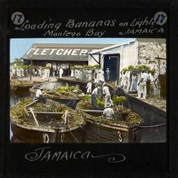 | Keywords: "Loading Bananas on Lighters, Montego Bay, Jamaica" early 20th century (imp-cswc-GB-237-CSWC47-LS12-017).jpg en <br> Loading Bananas on Lighters Montego Bay Jamaica early 20th century Image of bananas being loaded onto lighters small boats that were used to transport cargoes to ships Groups of men and women can be seen round the dock carrying bunches of bananas on their heads waiting to be loaded onto the lighters Others are loading up the lighters Until well into the 20th century Montego Bay functioned primarily as a sugar port but also exported bananas Photographer Unknown Filename imp-cswc-GB-237-CSWC47-LS12-017 tif Coverage date after 1900 Part of collection International Mission Photography Archive ca 1860-ca 1960 Type images Part of subcollection Photographs from the Centre for the Study of World Christianity University of Edinburgh U K ca 1900-ca 1940s Repository name Centre for the Study of World Christianity Archival file impaunpub_Volume7/1350 url Geographic subject city or populated place Montego Bay Repository address The University of Edinburgh School of Divinity New College Mound Place Edinburgh EH1 2LX United Kingdom Geographic subject country Jamaica Format aacr2 1 lantern slide 8 x 8 cm Geographic subject continent North and Central America Rights Contact the repository for details Part of series The Jamaican Church in the Bush LS12 Repository email divinity-CSWC ed ac uk Subject lcsh Keyword Commerce; Local foods Date created after 1900 Publisher of the digital version University of Southern California Libraries Subject aat genre external views Format aat lantern slides Legacy record ID impa-m68288 Access conditions http //www ed ac uk/schools-departments/divinity/research/centres/world-christianity/collections-resources File GB 237 CSWC47/LS12/17 after 1900 author http //digitallibrary usc edu/cdm/ref/collection/p15799coll123/id/64470 PD-old-70-1923 Magic lantern images Images from USC Digital Library uploaded by Fæ International Mission Photography Archive ca 1860-ca 1960 Montego Bay |