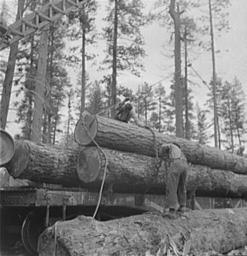 Keywords: Loading logs on flatcar1942.jpg Grant County Oregon Malheur National Forest Loading logs on flatcar http //hdl loc gov/loc pnp/fsa 8c32426 1942-07 Lee Russell PD-USGov Logging railways in the United States Flat railway wagons