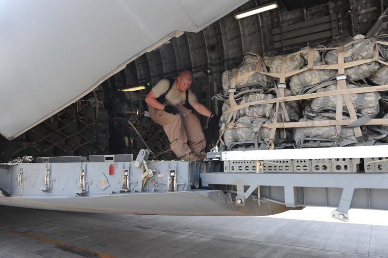 Keywords: Loading the plane DVIDS198697.jpg en Senior Airman Michael Sedlak a Third Army/USARCENT team member loads cargo onto a C-17 Globemaster III at an undisclosed location in the Middle East on Aug 21 Sedlak a native of Fort Myers Fla is currently serving with the 816th Expeditionary Aircraft as a loadmaster with the 436th Airlift Wing out of Dover Air Force Base Del in support of Operation Iraqi Freedom and Enduring Freedom 2009-08-21 Petty Officer 2nd Class Kim Harris https //www dvidshub net/image/198697 090821-N-+++++-975 2009-08-26 15 51 PD-USGov-Military-Navy Dover Air Force Base Boeing C-17 Globemaster III Images from DoD uploaded by Fæ |
