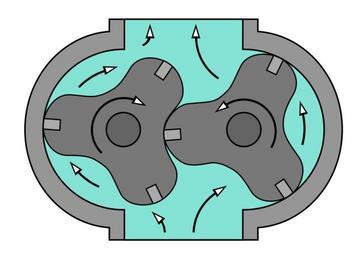 | Keywords: LobePump.svg en The figure shows a common form of lobe pump A cavity is formed and the material is pushed along the interior of the case to the discharge As the lobes mesh in the middle of the pump this prevents bypass or backflow of process material own Jahobr 2015-07-24 Lobe pumps Cc-zero |