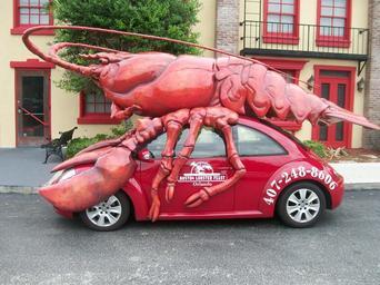 Keywords: Lobstercar1.JPG en Orlando Lobtser Car own Yarkob Volkswagen New Beetle art car Lobsters in art Red automobiles