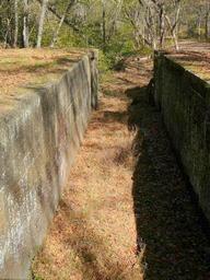 | Keywords: Lock 61 chesapeake and Ohio canal from NPS.jpg en Lock 61 on C and O Canal Nps site says Lock 61 is the third of the 13 composite locks and had a 10 lift These locks differ from the other locks on the canal Between the upper end of the lower gate pockets to the lower end of the upper gate pockets the stone walls were moved 9 ΒΌΒ° on each side resulting in a clear dimension between lock walls of 16 -16 Β½ rather that the 15 previously adhered to The normal clear dimension was resumed both up and down from these points The walls were of rough-cut and rough-coursed limestone principally dry-laid where the walls were widened and mortared in the other areas The wider area was filled in with 5 ΒΌ square timbers This wooden section of the lock was water-proofed at first by being kyanized and later with creosote The wood timbers required frequent replacing and around 1900 many repairs were made by stripping out the wood and pouring a cement liner This was the case at Lock 61 Shortly after its construction an extra 2 2 height of stone wall was added from the lower end of the upper gate pocket The normal gate was 14 high 8 rise plus 6 prism depth but due to the 10 rise these locks 16 high gates were required The 2 addition to Lock 61 required and unusually high gate of 18 The upper berm wingwall runs perpendicular to the lock for 31 to the inflow of the bypass flume This long wall is buttressed at about mid-point by a thickening of 3 6 for a 3 3 distance On the upper towpath wingwall a 3 3 buttress is placed after a 9 run of wall After a straight run of 13 the lower extension walls splay out at a 60Β° angle for about 15 and the lower berm then runs for 19 perpendicular to the lock to the outflow of the bypass flume National Park Service http //www hscl cr nps gov/insidenps/report asp STATE PARK CHOH STRUCTURE SORT RECORDNO 950 National Park Service Dept of Interior US Government Chesapeake Ohio Canal National Historical Park Locks water transport PD-USGov |