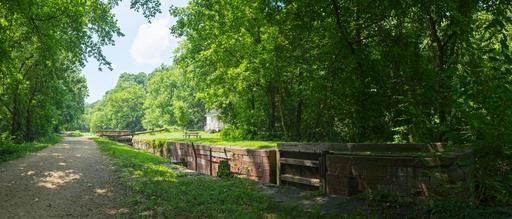 Keywords: Lock 8 on Chesapeake and Ohio Canal with towpath.jpg en Panorama of Lock 8 on Chesapeake and Ohio Canal own Bonnachoven Chesapeake Ohio Canal National Historical Park Locks water transport Cc-zero