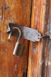 Keywords: lock padlock open opening old entrance iron rust weathered door