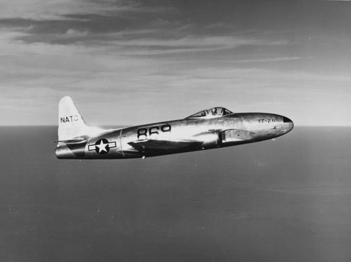 | Keywords: Lockheed TO-1 in flight near NAS Patuxent River 1948.jpg A U S Navy Lockheed TO-1 later redesignated TV-1 BuNo 33869 in flight near the Naval Air Test Center Patuxent River Maryland USA The TO-1 was a U S Air Force F-80C Shooting Star jet fighter acquired by the U S Navy in 1948 for advanced jet training Some equipped Marine Fighter Squadron 311 VMF-311 late in 1948 This TO-1 is assigned to NATC It wears the standard USAF polished-metal finish and a red warning stripe around the fuselage abaft the wing to indicate the location of the jet engine's rotor Official U S Navy photo http //www history navy mil/our-collections/photography/numerical-list-of-images/nhhc-series/nh-series/80-G-402000/80-G-402619 html 80-G-402619 from the U S Navy http //www history navy mil Naval History and Heritage Command 1948 U S Navy PD-USGov-Military-Navy Lockheed P-80 Shooting Star 1948 at Naval Air Station Patuxent River |