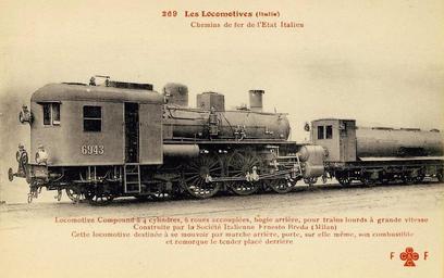 | Keywords: Locomotiva FS 6943.jpg Locomotiva 6943 delle Ferrovie dello Stato appartenente al primo gruppo 690 rinumerato nel 1907 gruppo 670 1905 1907 postcard Fernand Fleury 1918-07-18 Custom license marker 2012 10 21 PD-old-80 Uploaded with UploadWizard FS 670 Curiosities of Locomotive Design |